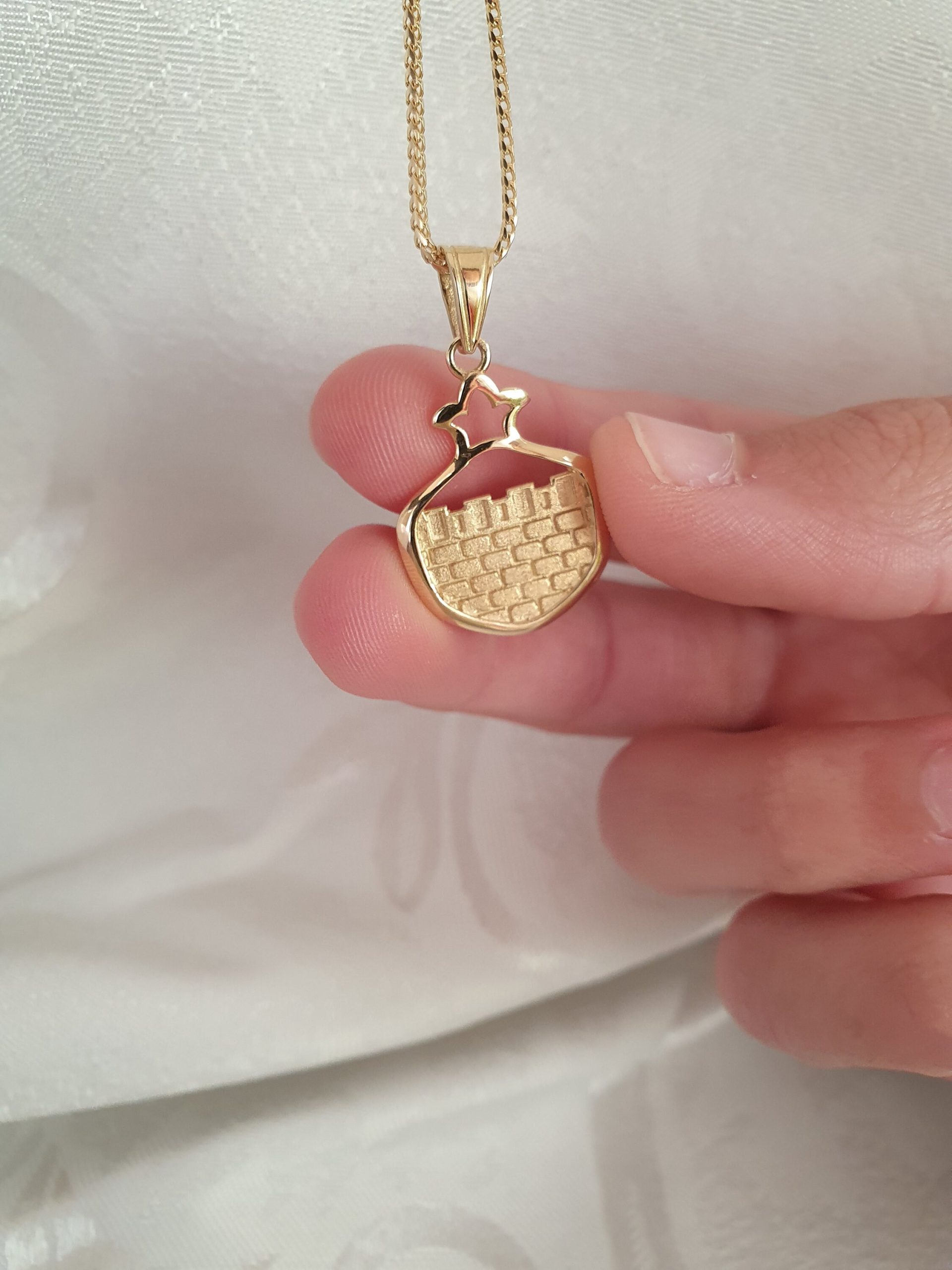 14k Gold pomegranate Pendant with the Western Wall of Old Jerusalem, Bar mitzvah gift, Unique Jewish pendant, necklace pendant, solid gold pendant. Pomegranate is one of the Israel’s original ‘seven species’ , the fruits that describe the blessing and beautiful of the Holy Land.