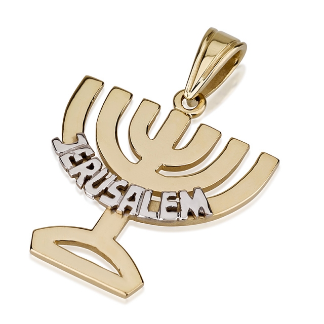 14K Gold Menorah Jerusalem Pendant - Ben Jewellers