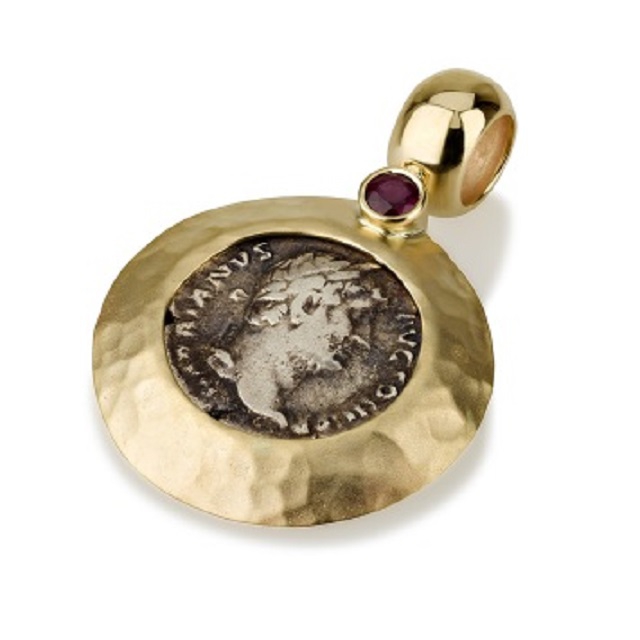 Roman coin 'Andreanus Caesar' - 65 B.C. to 160 A.D. with Ruby - Ben Jewellers